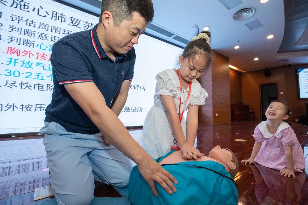 急诊科护士给孩子们现场演示了心肺复苏的正确操作过程及相关理论知识,让孩子们学会“救命”的技术。
