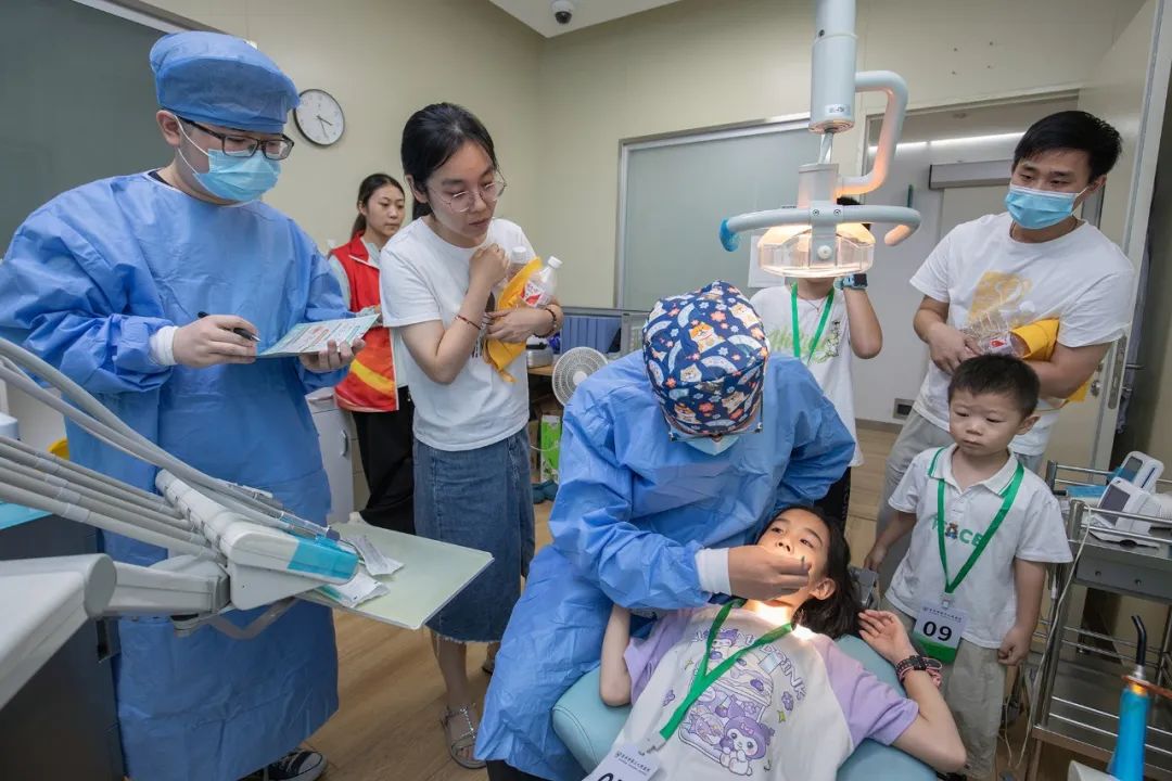 口腔科医生利用牙齿模型,告诉孩子们拔智齿并不能瘦脸,还教会孩子如何正确刷牙。