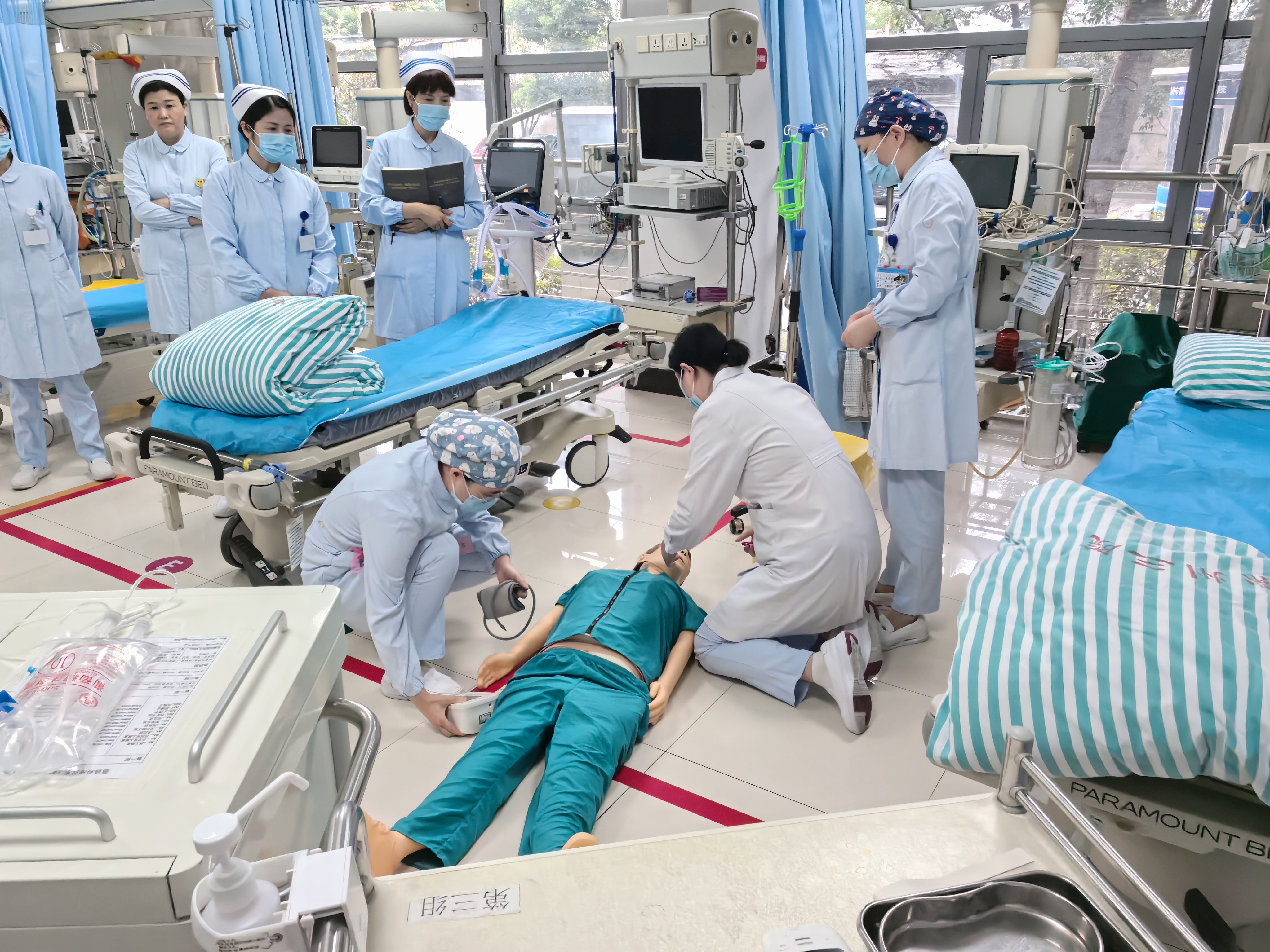 此次演练还特别以“独自值班如何呼叫增援”“患者在不同场地发生意外如何急救”及“患者突发跌倒原因如果判断”等展开深入讨论。在思维碰撞中,各科护士分享经验、不断完善应急救治方案。